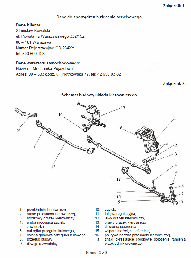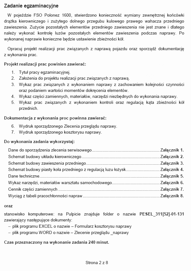 Technik pojazdów samochodowych egzamin praktyczny styczeń 2013